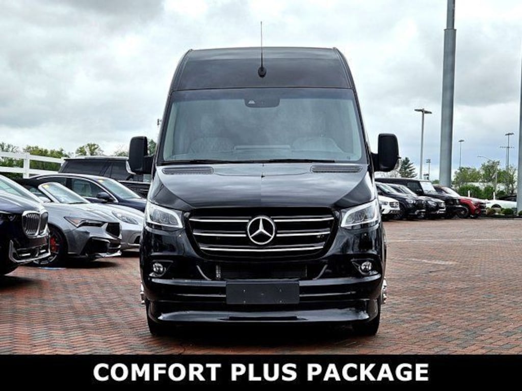 This 2024 Mercedes-Benz Sprinter 3500 comes with following features: 4-Wheel Disc Brakes, 4.727 Axle Ratio, 5 Speakers, ABS brakes, Air Conditioning, AM/FM radio, Bodyside moldings, Brake assist, Bucket Seats, Driver door bin, Driver's Seat Mounted Armrest, Dual front impact airbags, Dual front side impact airbags, Dual rear wheels, Electronic Stability Control, Emergency communication system: eCall Emergency System, Exterior Parking Camera Rear, Front anti-roll bar, Front Bucket Seats, Front wheel independent suspension, Fully automatic headlights, Heated door mirrors, Heated Driver's Seat, Heated front seats, Illuminated entry, Maturin Fabric Upholstery, Occupant sensing airbag, Outside temperature display, Overhead airbag, Overhead console, Passenger door bin, Passenger seat mounted armrest, Power door mirrors, Power steering, Power windows, Radio: Standard, Remote keyless entry, Speed control, Speed-sensing steering, Standard Driver Seat, Standard Front Passenger Seat, Steering wheel mounted audio controls, Tachometer, Tilt steering wheel, Traction control, and Wheels: 5.5J x 16 Steel.