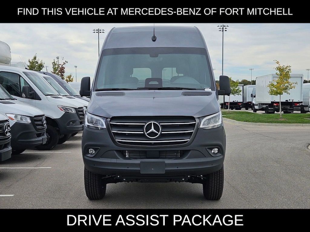 This 2025 Mercedes-Benz Sprinter 2500 comes with following features: All Wheel Drive Package, 16" x 6.5J Steel Wheels, 3.923 Axle Ratio, 4-Wheel Disc Brakes, 5 Speakers, ABS brakes, Air Conditioning, AM/FM radio, Armrest for Driver's Seat, Armrest for Front Passenger's Seat, Bodyside moldings, Brake assist, Co-Driver Thorax-Pelvis Sidebag, Driver door bin, Driver's Seat Mounted Armrest, Driver's Seat Occupancy Sensor, Dual front impact airbags, Dual front side impact airbags, Electronic Stability Control, Emergency communication system, Exterior Parking Camera Rear, Front anti-roll bar, Front Bucket Seats, Front Passenger Airbag, Front wheel independent suspension, Fully automatic headlights, Heated door mirrors, Heated Driver's Seat, Heated front seats, Illuminated entry, Low tire pressure warning, Maturin Fabric Upholstery, No Factory Installed Flooring, Outside temperature display, Overhead airbag, Overhead console, Passenger door bin, Passenger seat mounted armrest, Power door mirrors, Power steering, Power windows, Radio: Standard, Rain sensing wipers, Rear anti-roll bar, Remote keyless entry, Speed control, Speed-sensing steering, Standard Driver Seat, Standard Front Passenger Seat, Steering wheel mounted audio controls, Tachometer, Tilt steering wheel, Traction control, and Variably intermittent wipers.